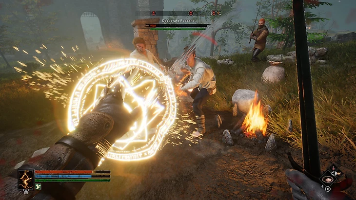 В плане геймплея хватает как очаровательных сходств со «Скайримом», так и выгодных отличий. Местный герой тоже экипирует в одну руку клинок, а в другую заклинание. Или же скрывается в тени, чтобы пустить стрелу и нанести бандиту сокрушительный урон. Даже прокачка работает по принципу «Чем занимаешься, то и улучшаешь». Настойчиво варите зелья и скоро станете крутым алхимиком. Энергично бегайте по дорогам и получите бонус к выносливости.