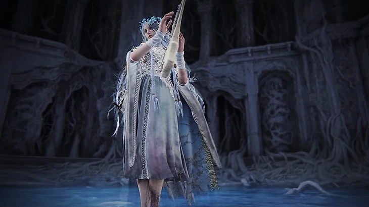 Revenant (Ревенант) – один из уникальных классов в игре, представляющий собой призывателя с магическими способностями. Ее образ впечатляет – голубоглазая девушка с фарфоровой кожей и белыми волосами, заплетенными в косу, носит белую вуаль и корону из синих цветов. В наряде, состоящем из призрачно-белого платья и синего плаща, гармонично сочетаются элементы загадочности и величия, что подчеркивает множество амулетов с изображениями колец.