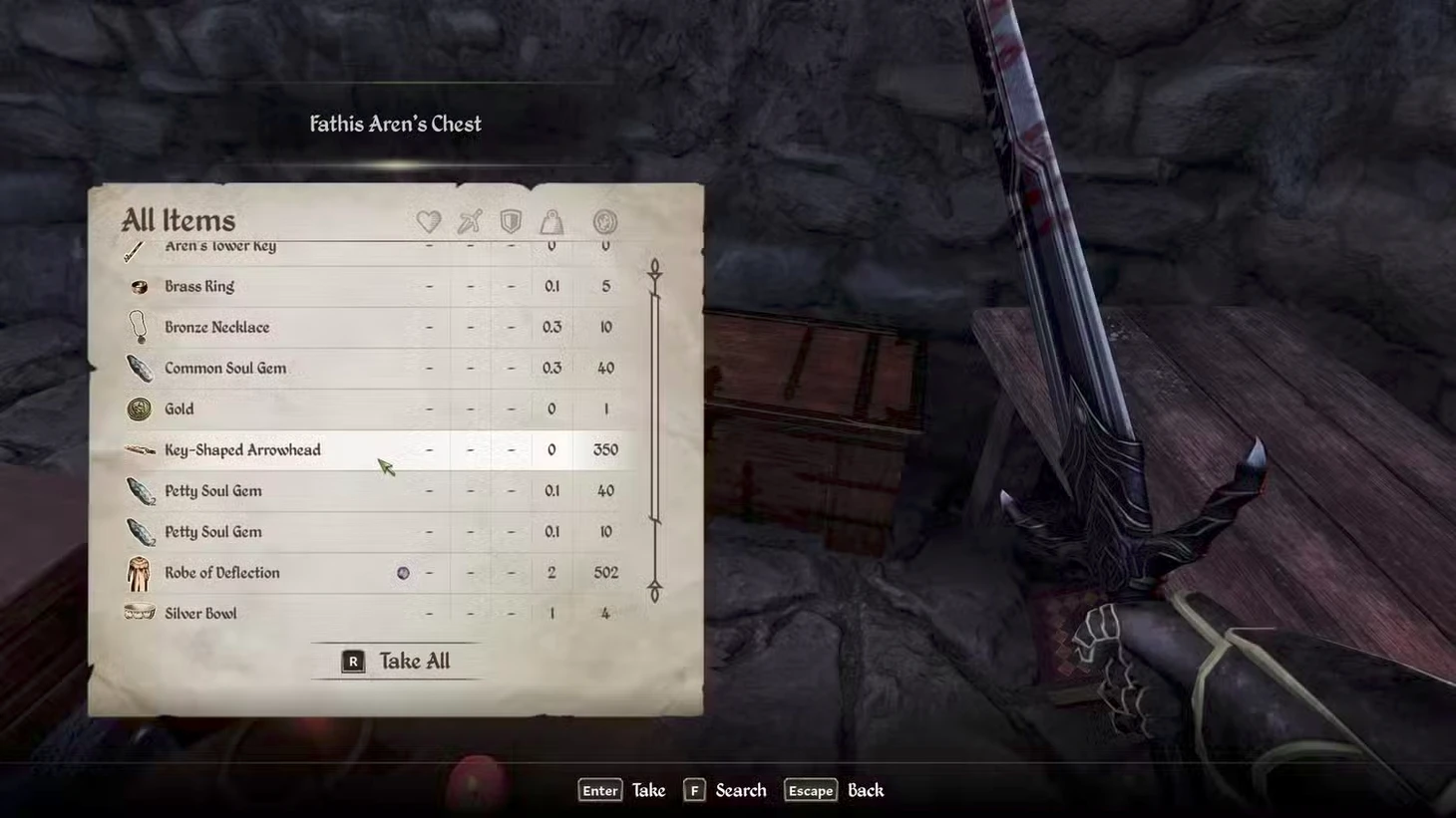 На верхнем этаже башни расположена лаборатория Фатиса с заветным сундуком. В нем хранится не целая стрела, а лишь ее наконечник в форме ключа – разочарование для Серого Лиса, но единственная доступная часть артефакта. Рядом лежит ключ от главной двери башни, позволяющий избежать обратного пути через подземелье. Кража должна быть аккуратной: если Фатис обнаружил героя (что вероятно из-за патрулирующих башню призраков и демонов), вступать с ним в бой чревато.