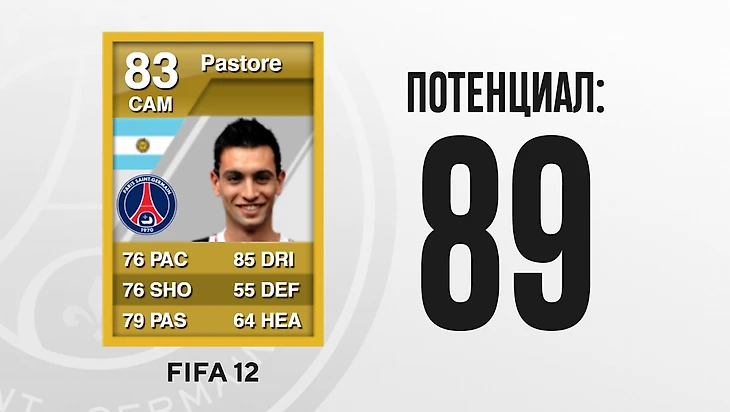 Хавьер Пасторе перебрался в Европу в 2009 году и быстро засиял в «Палермо». Трансфер аргентинского хавбека за 42 млн евро стал самой дорогой покупкой парижан летом-2011. Хавьер получил свободную роль под нападающими и выглядел главной звездой амбициозного проекта, а EA видела в нем духовного наследника Кака. Пасторе выдал отличный сезон (16+6 в 43 матчах), хотя признавался, что ментально не готов к высокой частоте матчей из-за еврокубков.