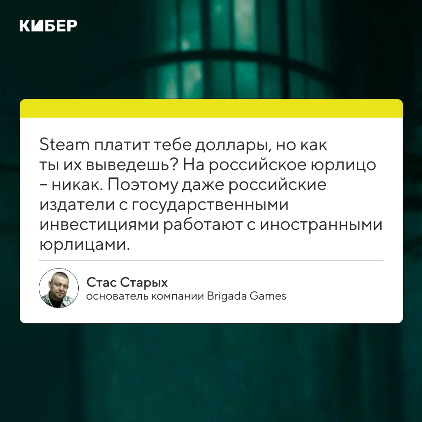 – Так и есть. Мы используем посредников из разных стран, иначе никак. Steam платит тебе доллары, но как ты их выведешь? На российское юрлицо – никак. Ты сделал игру, получил за нее деньги, тебе нужно их вывести и заплатить людям зарплату. Сейчас с российским юрлицом сделать это, к сожалению, не получается. Поэтому даже российские издатели с государственными инвестициями работают с иностранными юрлицами.