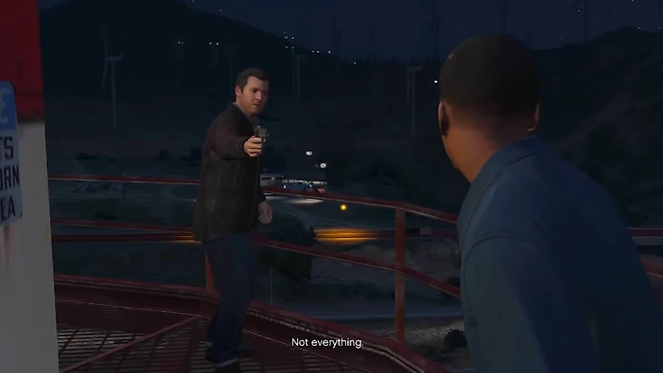 Спасти Майкла? В диалоге появляется опция «Отпустить его»: Франклин может прострелить пружину, удерживающую решетку, и дать Майклу упасть на землю без летального исхода. Тогда Майкл остается жив, но тяжело ранен.