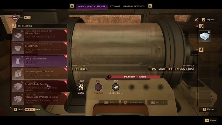 Различные методы обработки: Обработка сырья – это длительный процесс, который следует учитывать при передвижении по землям Арракиса. Существует несколько методов обработки в зависимости от сырья, поэтому убедитесь, что вы используете правильное оборудование для очистки предметов. Например, Кровь может быть очищена до Воды, которая является важным ресурсом для крафта и исследования в целом.