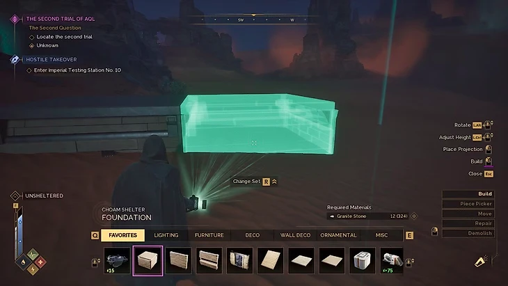 Строительство в Dune: Awakening простое, но некоторые его части могут быть запутанными для некоторых игроков. Вам потребуется Строительный инструмент (Construction Tool). С его помощью вы можете либо сразу размещать строительные элементы, либо создавать 3D-чертежи желаемого элемента для предварительного планирования.