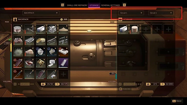 Обратите внимание, что существует ограничение по емкости хранилища игрока. Вы должны обращать на это внимание и брать только то, что вам нужно, чтобы сэкономить место для более важных вещей во время исследования.