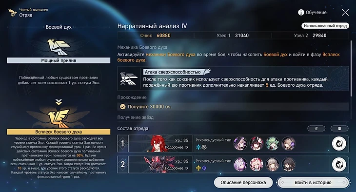 На этом этапе желательно взять хилера с клинсом или с периодическим исцелением, чтобы снимать с союзников дебаффы спектральной посланницы. Возьмите команды, в которых главный дамагер наносит физический или электрический тип урона, либо Раппу с усилением на пробитие. Если вы взяли Зарянку, отключите автобой (или автоиспользование сверхспособностей) и включайте ее ульту только когда ход вашей команды закончится, чтобы не потерять дополнительные действия.