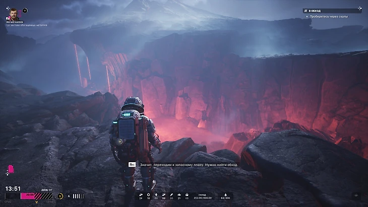 К черту, я отказываюсь жалеть себя и покорно ждать смерти. Когда она придет, я дам отпор. Поэтому покидаю базу и брожу по проклятой планете. В одном месте находится металл для крафта снаряжения вроде крюка, фильтров и бурильной установки. В другом – залежи органического материала, пригодного для еды.