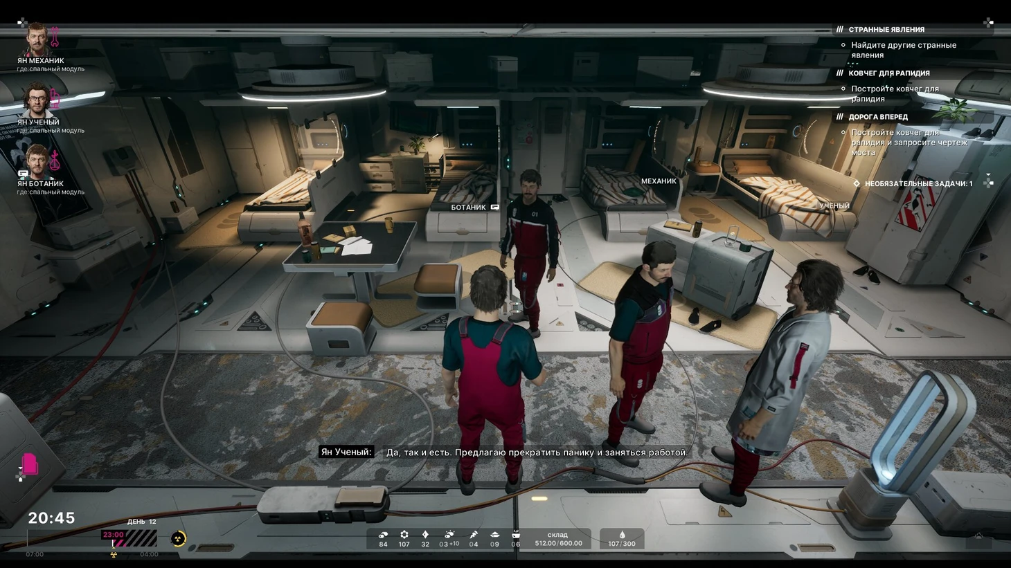 Металл и органика бесполезны без мастерской и кухни. Я достаю инструменты и строю на базе новые помещения. И понимаю, что склады, лаборатория и жилое помещение тоже пригодятся. Увы, места мало, каждым свободным метром нужно распоряжаться с умом. Так я превращаю вымышленную игру The Alters в симулятор убежища вроде Fallout Shelter.
