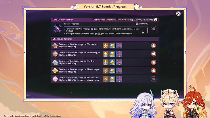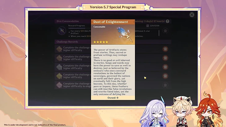 В версии 5.7 Пыль просветления будет выдаваться бесплатно: по три штуки за участие в «Мрачном натиске» в рамках версии, еще по одной – через боевой пропуск, и дополнительно две – по внутриигровой почте после входа в игру.
