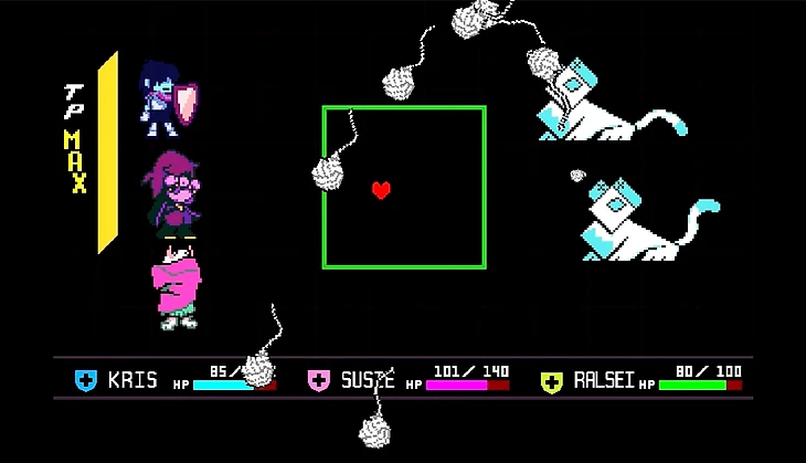 Если обобщать, боевая система Deltarune сочетает классические пошаговые приемы с динамикой bullet hell, где вы уклоняетесь от атак, управляя сердечком. У каждого врага есть индивидуальный стиль: одни превращают битвы в мини-игры, другие – в комические сценки. Врагов можно пощадить, и тогда они присоединятся к вашему лагерю в Городе-замке. А можно добить – и получить опыт, но потерять шанс на уникальные диалоги. Решение остается за вами, и оно поменяет восприятие всей истории.