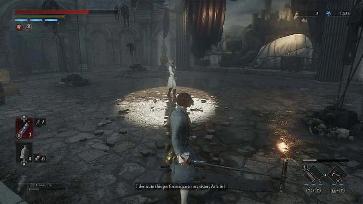 Иногда помогала смена оружия, например, Белую Госпожу я закружила в танце из атак и уворотов с помощью Меча танцовщицы. Остальные мечи, рапиры и прочее, никак не подходили под темп, я частенько сбивалась и получала урон.