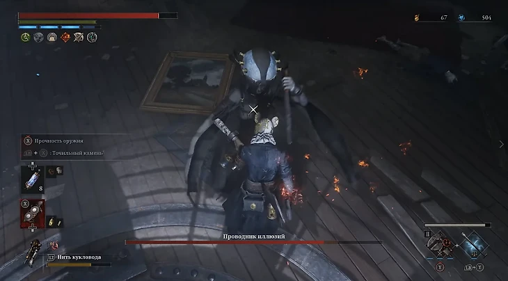 Проводник Иллюзий хоть и необязательный босс в игре, но я всё равно решила, что его нужно убить. Я офигевала от темпа боя: у него очень быстрые атаки, он умеет создавать свои копии - тут главное не терпеть, не стоять на одном месте и пытаться блокировать удары.