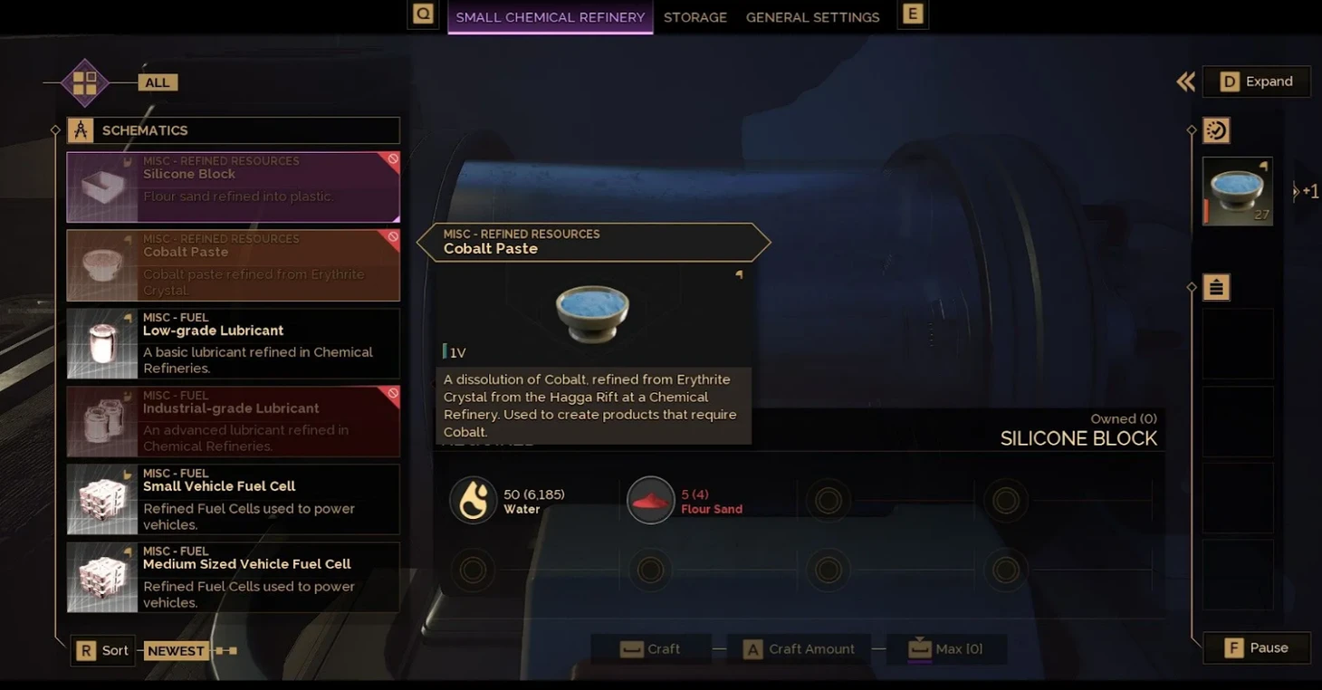 После сбора необходимого количества кристаллов возвращайтесь на базу и используйте химический завод для переработки сырья в «Кобальтовую пасту».