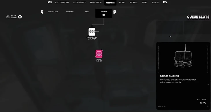 После завершения исследования Ученым Яном игрок получает возможность создавать якоря моста в мастерской. Для изготовления одного якоря потребуются: