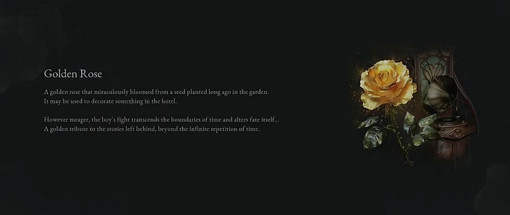 Когда вы завершите весь дополнительный контент и вернетесь в отель Крата в настоящем времени, на месте, где было посажено семя, вы обнаружите выросшую «Золотую розу». Этот цветок – не просто украшение, а ключ к новой возможности.