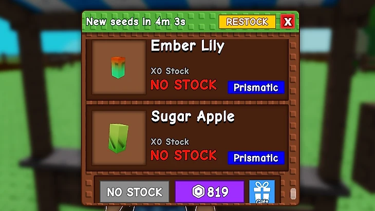 Купить за Robux: Не хочешь ждать и копить? Тогда можешь просто взять семена за 819 Robux.