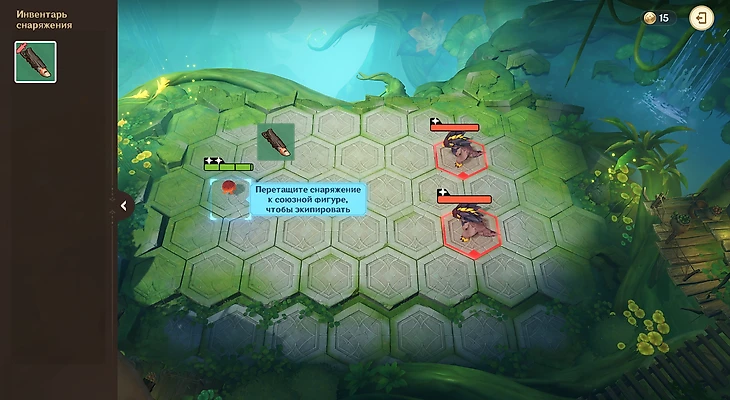 Смысл игры заключается в том, чтобы правильно расставить фигуры и скомбинировать элементы. Для этого придется применять разные подходы. Например, Пиро плесенники хорошо справляются с врагами, уязвимыми к огню. Если объединить их с другими типами, можно вызывать элементальные реакции, вроде Перегрузки или Заморозки. Соратники одного вида сражаются бок о бок эффективнее.