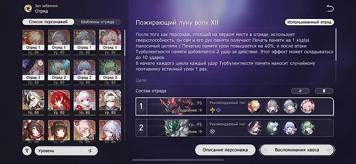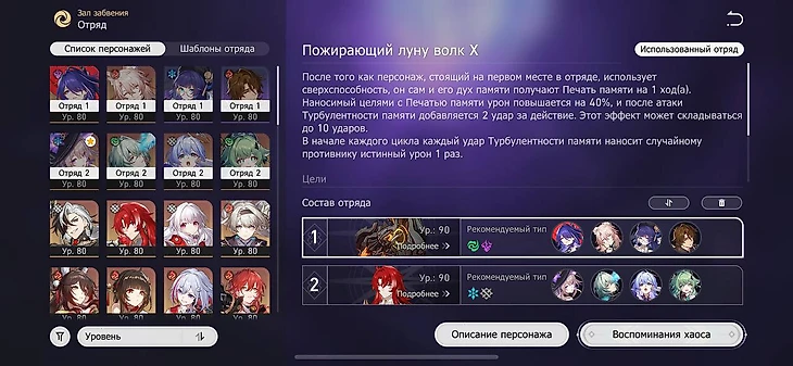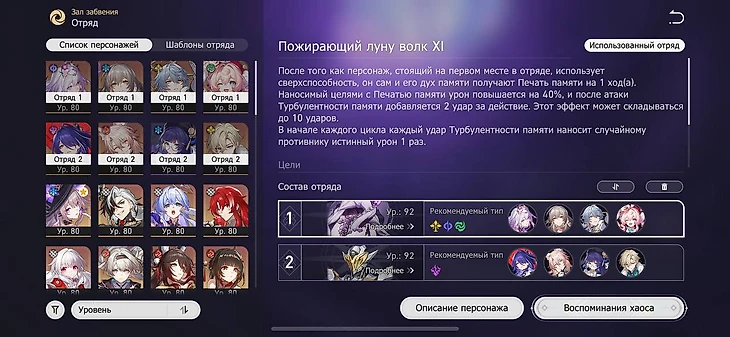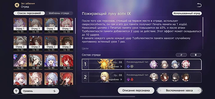 Благословление этапа: После того как персонаж, который стоит на первом месте в отряде, использует сверхспособность, он и его дух памяти получают статус Печать памяти на 1 ход. Этот статус повышает наносимый урон на 40%, а после атаки Турбулентности памяти добавляется 2 удара за действие. Эффект может складываться до 10 раз. В начале каждого цикла турбулентность наносит случайному врагу истинный урон 1 раз.