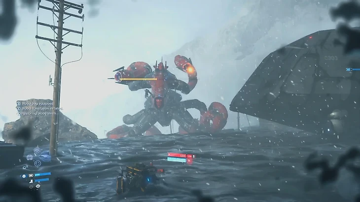 Основная цель Сэма – следовать вдоль массивной реки на восток, чтобы обойти скопление Тварей, а затем двигаться на юг к F4 и далее на запад к F7. Важно не использовать ускорение, чтобы не разрядить аккумулятор транспортного средства, если поблизости нет генератора. После долгого пути Сэм наконец прибывает в F7 и доставляет груз. Сразу после этого автоматически начинается Заказ 45, который предвещает новую битву с боссом.