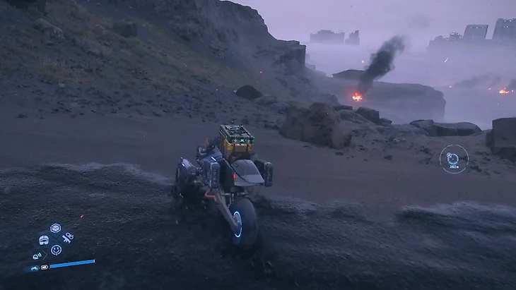 Игра Death Stranding 2: On the Beach начинается со вступительной катсцены, которая кратко обрисовывает событие «Выход Смерти», ставшее причиной текущего состояния мира. Камера фокусируется на главном герое первой игры, Сэме, и его маленькой Лу на горном хребте. Игроку предстоит взять под контроль Сэма и выполнить его первую задачу – вернуться домой с Лу, который находится почти в 1200 метрах.
