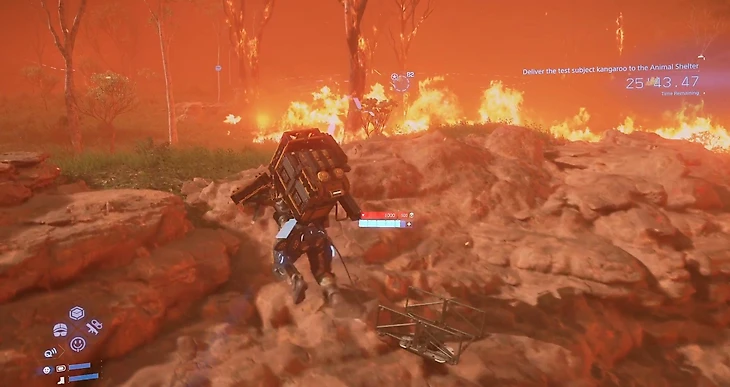 Сразу после выхода с базы вы заметите первые признаки пожара – окрестности заполонили огненные языки. Чтобы добраться до кенгуру, продвигайтесь вглубь леса, предварительно установив лестницу через реку у входа в горящую зону.