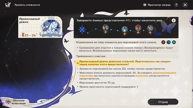 Превосходный. Нужно 22-26 персонажей, пройдите представления до четвертого босса.