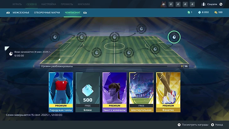У «Рематча» большие проблемы с игровой прогрессией. Разработчики сильно поверили в геймплейное ядро проекта и забыли про точки интереса для игроков. Скучный батлпасс из трех частей рассчитан на три месяца, но закрывается намного быстрее. В наградах иногда встречаются красивые стадионы и местное золото – кванты, но в основном там банальная кастомизация вроде кепок или бороды. Финальный приз – какой-то топик с прической.
