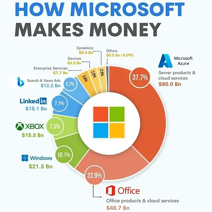 Microsoft – это более 220 тысяч сотрудников, офисы в 190 странах, десятки дочерних компаний и подразделений (Azure, Windows, Office, Xbox, LinkedIn и др.) и рыночная капитализация, превышающая $3 триллиона.