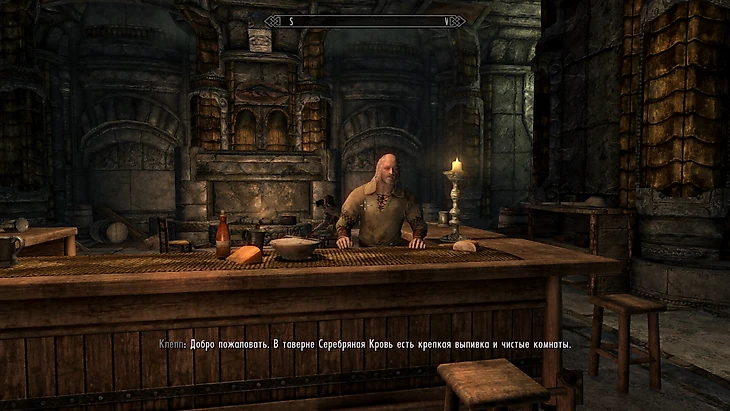 Четверка здесь только за расположение. Контингент – вообще не супер, хозяйка таверны Дельфина подозрительно на меня косится. У нас в Скайриме много людей с послевоенным ПТСР, но это не значит, что надо смотреть на всех как на преступников или врагов. Такое ощущение, будто работать за стойкой ей в тягость, хоть бы улыбнулась клиентам. Зато хотя бы музыка приятная – бард Свен свое дело знает.