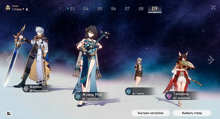 Если вы успели бесплатно взять Жуань Мэй, то ее можно добавить в супербюджетную сборку. Тинъюнь хоть и не заливает энергию для ульты, но дает ему бафф навыком и ультой, а Первопроходец продвигает действие. Баффы Жуань Мэй распространяются на всю команду и тоже помогут ему со стаками.