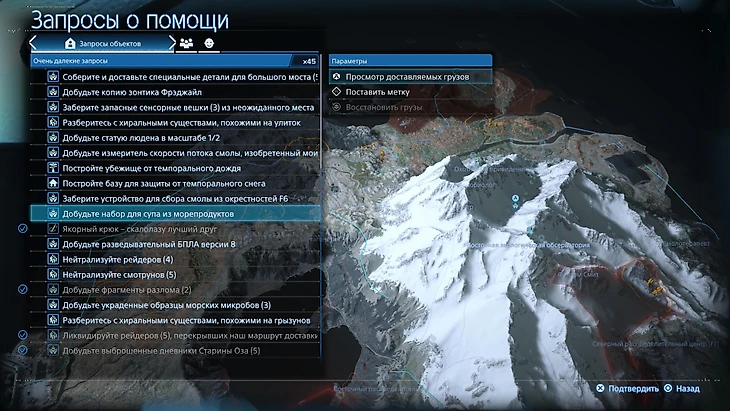 Запросы о помощи – единственный вид заказов, которые доступны не в терминалах узлов, а сразу в меню игры. Чтобы посмотреть доступные запросы о помощи, нажмите меню на геймпаде, затем кнопку влево и выберите – «Запросы о помощи».