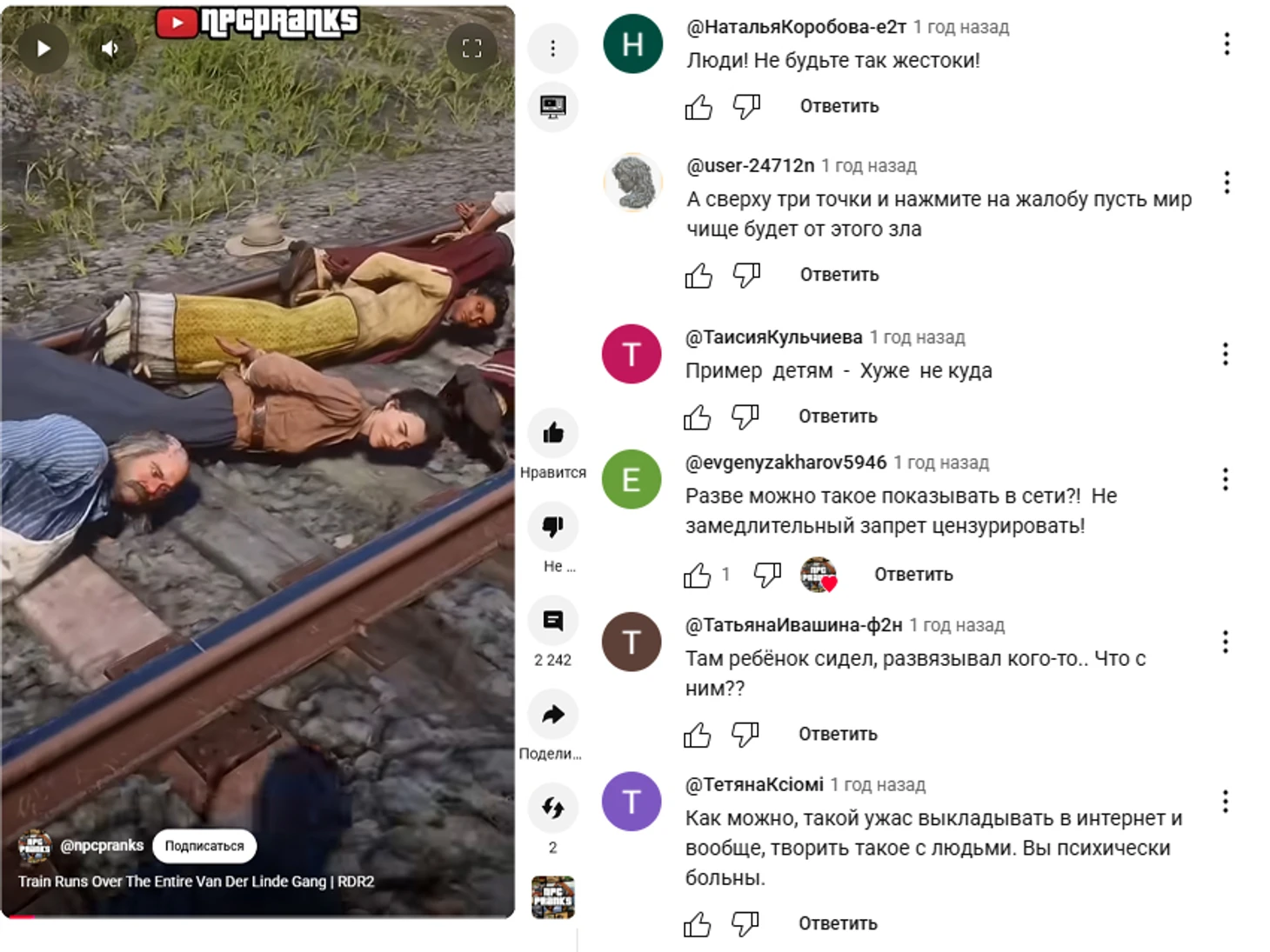 В соцсетях обсуждают комментарии под роликами с NPC из Red Dead Redemption 2. Короткое видео залетело в рекомендации слегка не той аудитории: от показанной жестокости разразились праведным гневом пенсионерки.