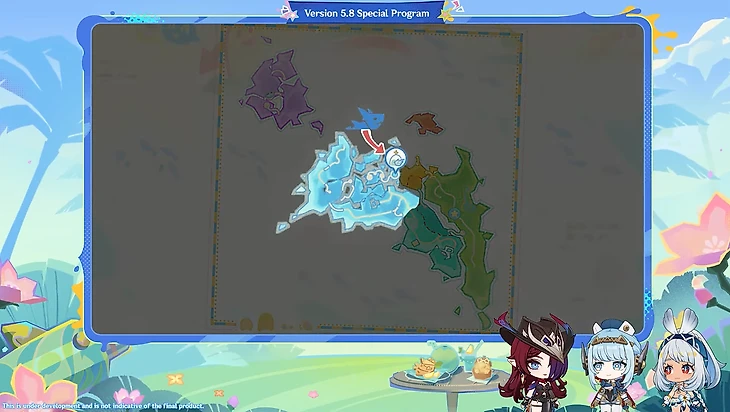 Новая постоянная область Тейвата – курорт «Оазис отдыха», расположенный на острове у западного побережья Натлана.
