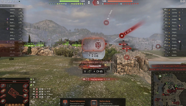 ● Апогеем стала смерть на первой минуте от «Слесаря Проктолога» с жетоном «0 дней в игре». Дело было так: у врага оставалось 30% здоровья – я с гоготом летел на него с полным запасом. Он стрелял по мне – и пробивал раз за разом. Мои же снаряды или постоянно рикошетили, или не пробивали броню. В итоге он остался на 20%, а я смотрел на тлеющую технику и бомбил.