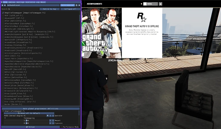 Решейд заслуженно входит в число наиболее востребованных решений для графического апгрейда Grand Theft Auto V. Данное программное обеспечение предоставляет расширенные возможности настройки визуальной составляющей, включая управление эффектами глубины резкости (depth-of-field), цветокоррекцию и другие параметры изображения.