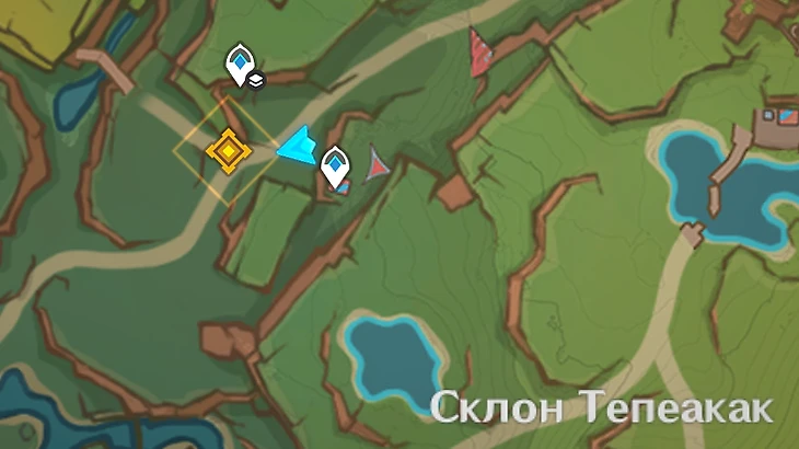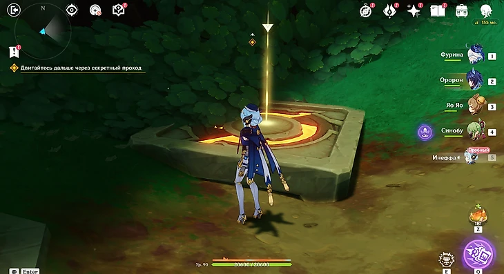 Зайдите в пещеру и начните подземелье «Храм каскадных цветов: Тепостацин». Соберите команду с Гидро и Электро персонажами. Внутри вы познакомитесь с Жрицей Свечей и Небесных Перьев. Когда вы начнете задавать ей вопросы, выход заблокируется. Победите автоматонов и идите дальше.