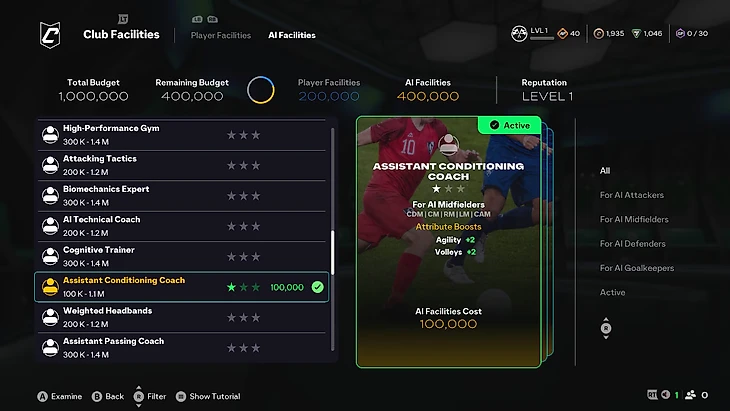 ● Бонусы характеристик ИИ для прокачки клуба.