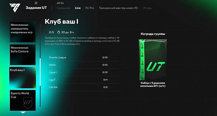 Бонусы для FC 26 можно заработать в заданиях, а также некоторых ИПК. Полный список испытаний и наград «Межсезонья»: