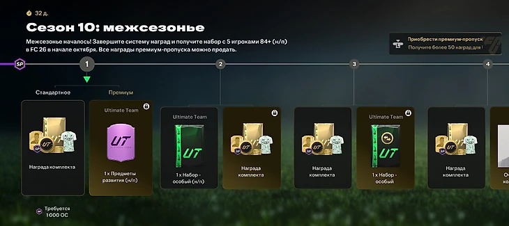 «Межсезонье» – десятый и последний сезон FC 25. В нем много заданий на паки и карточки с высокими рейтингами – например, новичок мадридского «Реала» Дин Хейсен, а еще неплохие бонусы для будущего футсима. Выполняйте испытания под названием «Клуб ваш» и получите награды в FC 26.