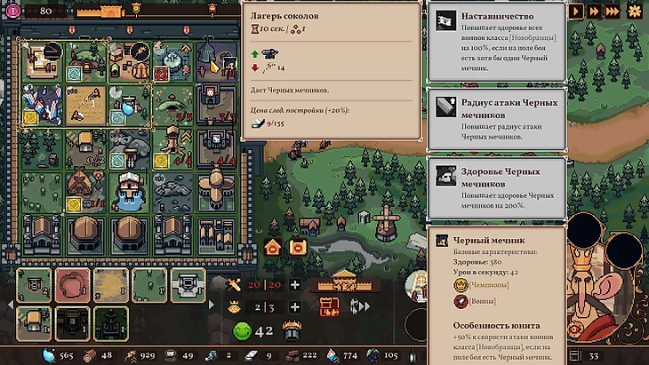 Другая беда – рандом. Чертежи построек выпадают случайным образом. Бывает так, что в королевстве стоит казарма мечников, но железная шахта, без которой не призвать бойцов, настойчиво не идет в руку. Обидно!