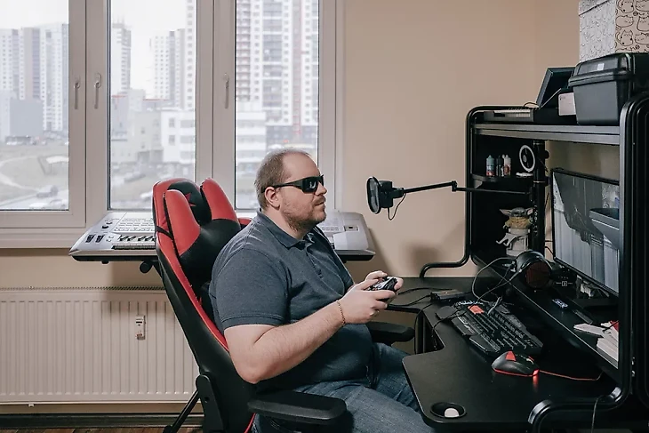 Игорь рубится в Mortal Kombat 1 и зачищает подземелья в World of Warcraft. Поэтому не понимает слепых, которые жалуются на отсутствие подходящих игр. Отыскать интересный проект вполне реально. Просто некоторые игры вроде «Скайрима», «Ведьмака 3» или Baldur’s Gate 3, увы, недоступны. Игорь надеется, что однажды энтузиасты закатают рукава и выпустят для этих игр моды для слепых.