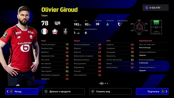 У Оливье Жиру другой стиль. 38-летний вожак «Лилля» едва ли убежит в контратаку, зато раскрывается на дальних забросах и с удовольствием вколачивает мячи головой. Жиру – умный таргетмен. Он бьет и пасует в касание, зарабатывает и пробивает пенальти, а еще получает бонусы «Суперзамены» во втором тайме.