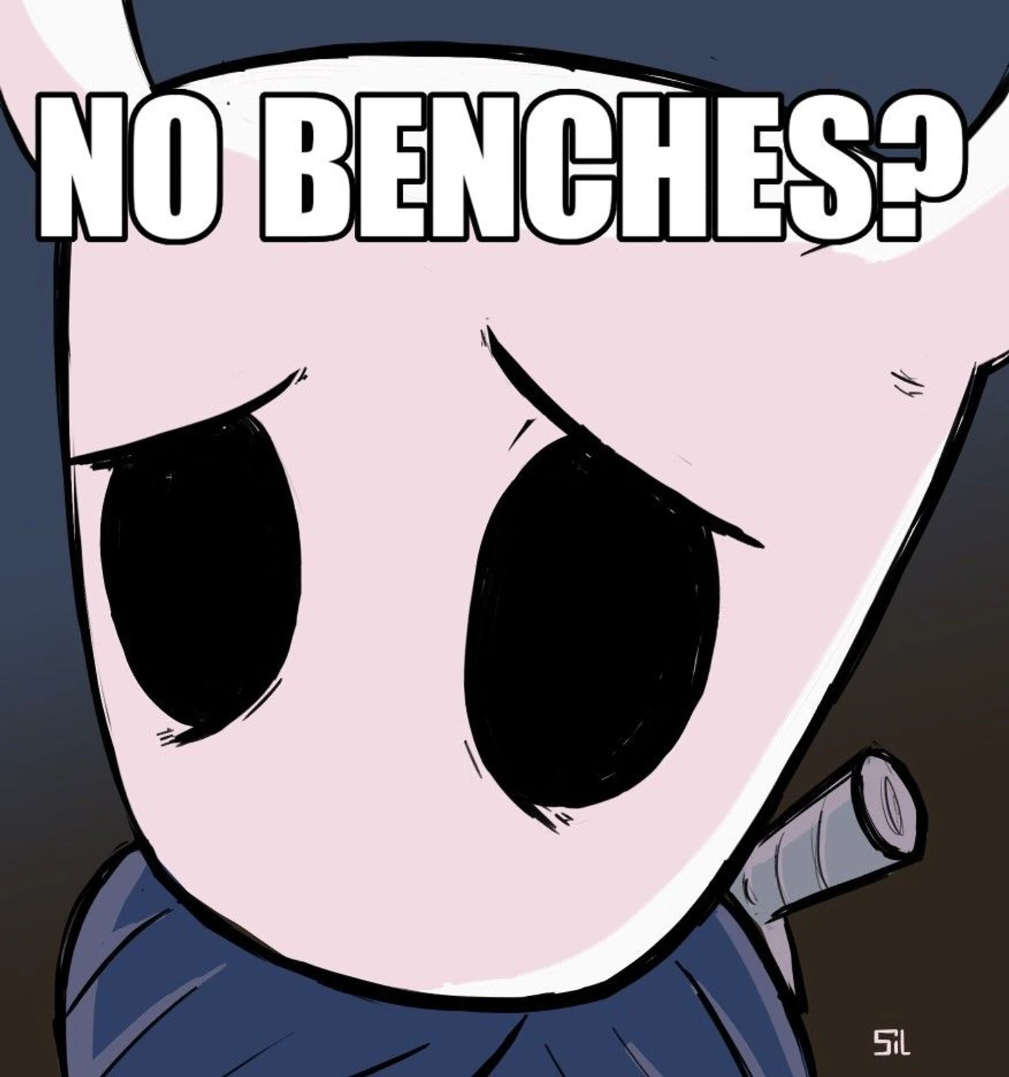 В Hollow Knight вы не получаете карту локации автоматически. Сначала нужно найти картографа Корнифера, который прячется в укромном уголке каждого нового региона, и купить у него черновой набросок. Но даже после этого карта не будет обновляться сама. Чтобы на ней появились новые проходы и комнаты, нужно дойти до скамейки и отдохнуть.