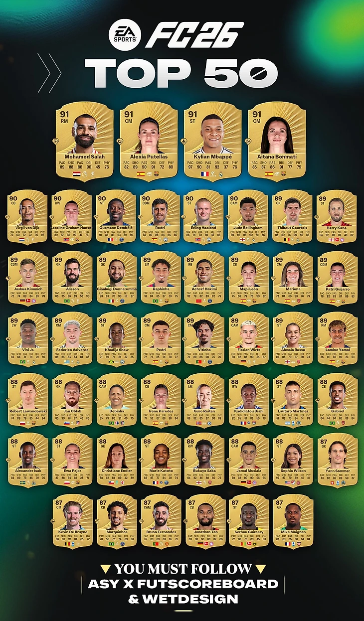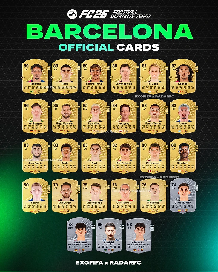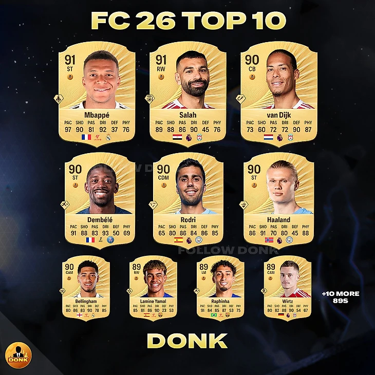 Рейтинг новой части изменились до неузнаваемости. Мохамед Салах разделил высший балл с Килианом Мбаппе, а Родри и Эрлинг Холанд получили небольшой даунгрейд (-1). Дальше – настоящее безумие! Лидеры «ПСЖ» Витинья и Ашраф Хакими получили рейтинг 89, а Усман Дембеле попал в элитную кампанию с 90 баллами. Похожая ситуация у игроков «Барсы» – 89 очков получили Рафинья, Ламин Ямаль и Педри.