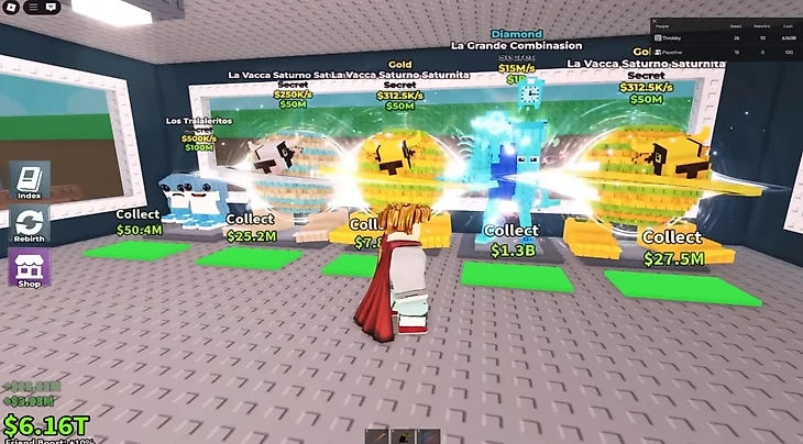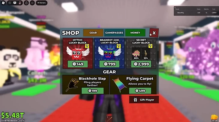 Покупка на конвейере – путь терпеливых. Вам нужно караулить конвейер в надежде, что на нем появится секретный брейнрот, и иметь при этом достаточную сумму на счету. Чтобы увеличить свои шансы, используйте бусты удачи сервера (Server Luck). Их можно приобрести за Robux (например, ×2 удача за 240 игровых единиц) или присоединиться к серверу, где такой буст уже активен. Это может повысить шанс выпадения в 2-5 раз.