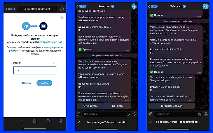Запустили авторизацию на Кибере через Telegram. Работает в два клика
