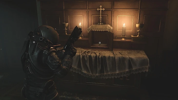После этого на алтаре появится ключ, который откроет заднюю дверь в часовне. Внутри находятся полезные припасы и главный приз — двуствольное ружье «Mace JER-5120».