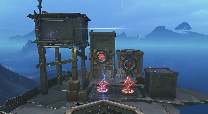 3. Третье испытание потребует использовать кран. Для этого нужно зарядиться у светящегося растения и бросить механизм в контейнер, чтобы активировать механизм. Кран поднимет недостающий ящик.