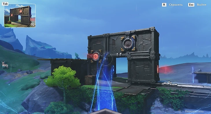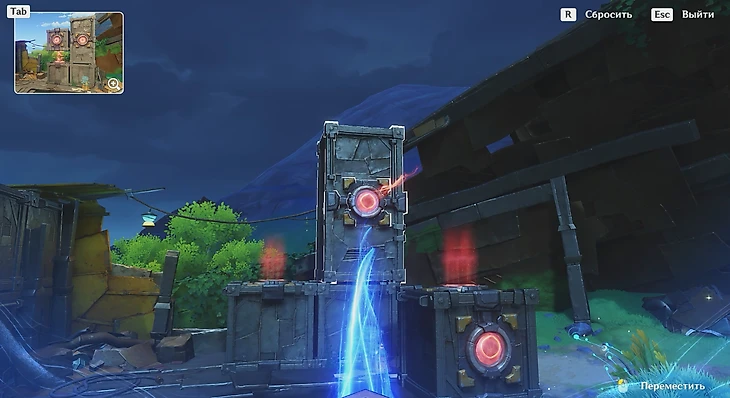 Чтобы открыть проход, снова используйте светящиеся растения и механизмы. Нужно активировать несколько ящиков, чтобы кран убрал завал. Начните с крайнего по правую сторону: вставьте в него механизм.