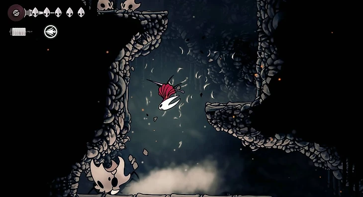 В сравнении с предыдущей частью серии, в Silksong были внесены изменения в механику пого-прыжка. Теперь персонаж двигается не строго вертикально вниз, а по диагонали, что добавляет больше вариативности и требований к точности игрока. Именно поэтому важно заранее оценивать расстояние и угол атаки, прежде чем совершить очередной прыжок. Сбор разнообразных символов (знаков) может значительно повлиять на характеристики вашей атаки, включая и сам пого-прыжок.